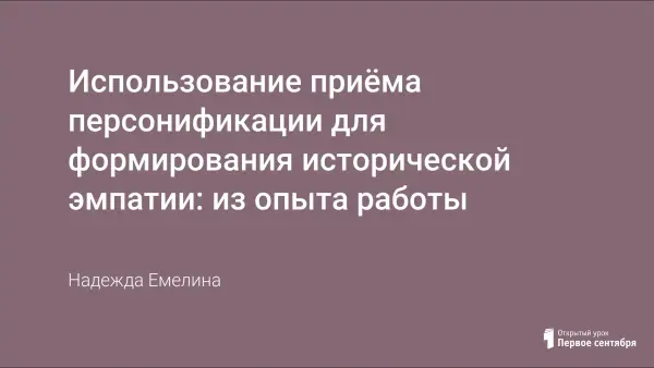 Используя прием персонификации на уроках истории, учитель не только развивает индивидуальные способности ученика, но и нравственные потребности ребенка, предлагая ему взглянуть на исторические события глазами человека прошлого. В статье представлен пример такого урока.