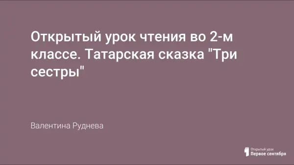 Материал представляет собой план-конспект открытого урока по теме "Три сестры" – татарская сказка. На этом уроке показана работа со сказкой, которая учит беречь и любить самого дорогого человека в мире, правильно использовать пословицы и поговорки, развивает интерес к чтению, позволяет расширить читательский кругозор.