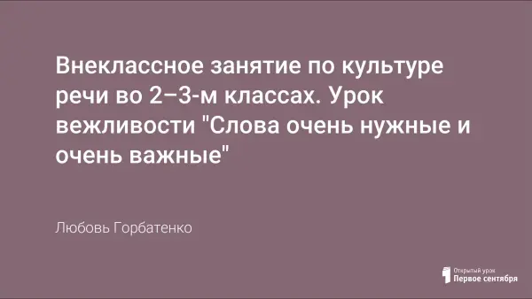 Урок вежливости для 2-3-х классов проводится в игровой форме – путешествие по «Лабиринту Вежливости». Занятие направлено на закрепление и углубление знаний детей о речевом этикете, о вежливости, культуре поведения. На занятии используются элементы театрализации.