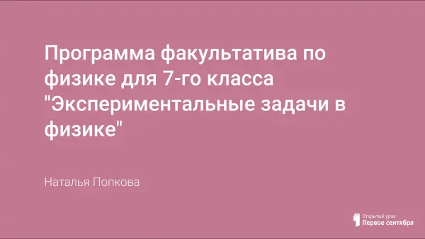 Данный факультатив является пропедевтическим курсом изучения физики в средней школе. Его основная цель – развивать интерес к предмету и способствовать развитию мышления учащихся.