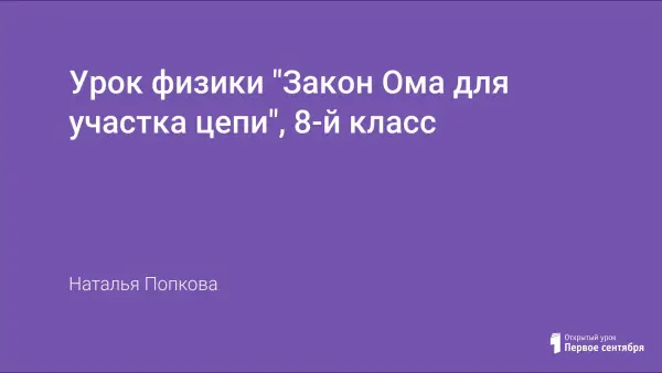 Урок "Закон Ома для участка цепи" является центральным в теме "Электрические явления", так как позволяет повторить основные понятия, изученные ранее; установить законы взаимосвязи основных величин, характеризующих ток; наметить перспективу дальнейшего изучения законов постоянного тока. Основным методом является проблемное обучение. Учитель сознательно ставит учеников перед фактом, что их знаний недостаточно для решения конкретной задачи. Учащиеся сами определяют, какие связи им необходимо установить и как это лучше сделать.