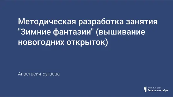 Занятие спланировано по программе «Художественная вышивка». Дети знакомятся с наиболее важными символами и персонажами новогодних и рождественских открыток, самостоятельно выполняют вышивку. Изучение данной темы позволяет развивать творческое воображение учащихся, фантазию; воспитывать аккуратность, самостоятельность, умение доводить начатое до конца, добиваясь лучшего результата.