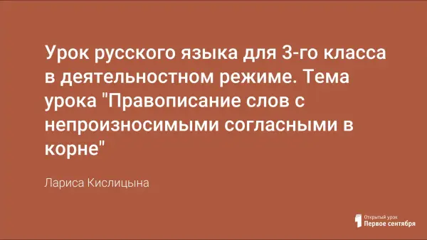В разделе по теме "Непроизносимая согласная в корне слова" этот урок проводится первым. В