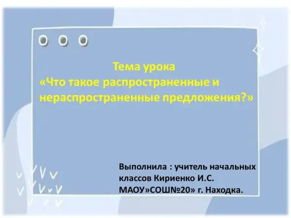 Методическая разработка урока по теме «Что такое распространенные и нераспространенные предложения?» предназначена для изучения русского языка во 2-м классе начальной школы по учебнику под редакцией В.П.Канакина 2023 г. В учебном материале отводится всего один урок на изучение данной темы. Поэтому важно построить урок так, чтобы, изучаемый материал был: интересный и познавательный; хорошо запоминаемый и наглядный.