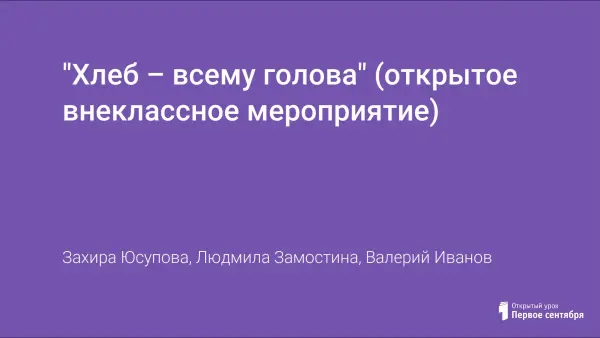 "Хлеб - всему голова" - внеклассное мероприятие, посвященное Дню Победы в Великой Отечественной войне. В литературно-музыкальной композиции принимали участие учащиеся 2–3-х классов.