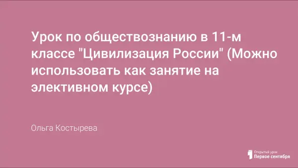 В связи с дискуссионностью проблемы о цивилизационной принадлежности России целесообразно сочетание лекционного изложения учителем основных проблем, связанных с определением своеобразия российской цивилизации, и собеседования с учащимися по существу этих проблем.