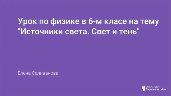 Урок по физике на тему «Источники света. Свет и тень» в 6-м классе, проводится при изучении пропедевтического курса физики-химии по программе А.Е. Гуревича, Д.А. Исаева, Л.С. Понтак. Учащиеся в этом возрасте с интересом изучают материал. Разнообразие форм и методов, используемых на уроке, делает его эффективным, интересным, формируют интерес к предмету.