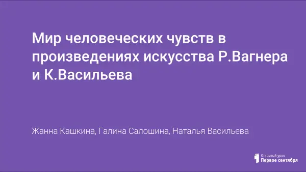 Цель урока: вызвать у учащихся интерес к творчеству неординарного композитора Р.Вагнера, познакомить с фрагментами его «Кольца нибелунга» и творчеством художника К.Васильева и рассказать о способности искусства передавать различные человеческие эмоции; формировать художественно-эстетический вкус учащихся, поддерживать интерес к учебной деятельности.