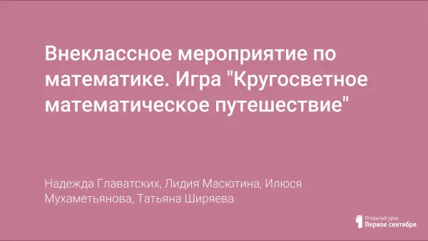 Представлена разработка внеклассного мероприятия по математике. Игра "Кругосветное математическое путешествие" разработана учителями математики для учащихся 8-х классов. Игра - это творчество, труд. В процессе игры у детей формируется привычка сосредотачиваться, мыслить самостоятельно, развивается внимание, стремление к знаниям. Увлекшись, дети не замечают, что учатся: познают, запоминают новое, ориентируются в необычных ситуациях, развивают фантазию. Даже самые пассивные из детей включаются в игру, стараясь не подвести товарищей по команде.