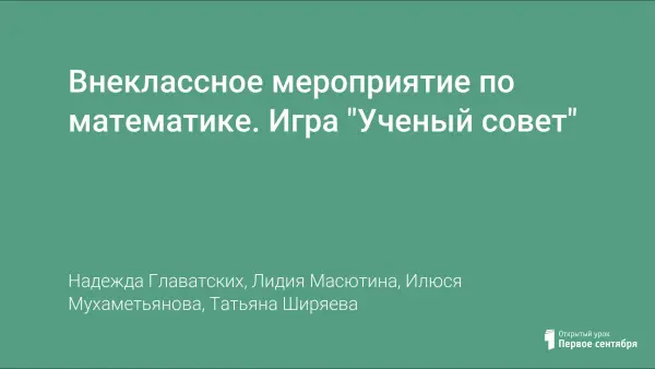 Игра "Ученый совет" разработана учителями математики. Она была проведена для учащихся 7-х классов. Действующими лицами являются великие математики разных времен. В этих ролях выступают 3 учителя математики. К каждой команде в помощь приставлен ассистент из числа старшеклассников. Команда состоит из 5–7 человек и капитана команды. Для более достоверного оценивания задания всем командам даются одинаковые. Раздаточный материал готовится заранее и вкладывается в конверт. В этой игре могут принять участие до десяти команд.