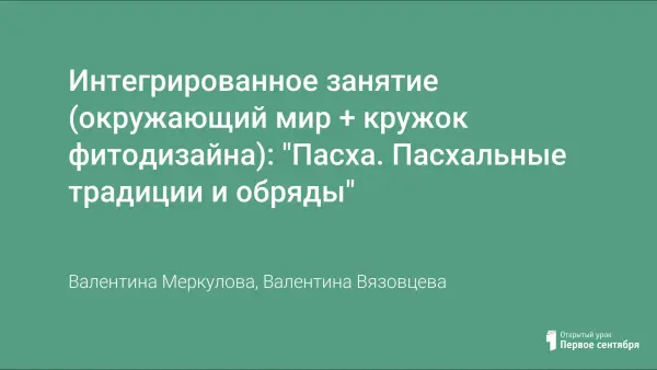 Интегрированное занятие (окружающий мир + кружок фитодизайна): "Пасха. Пасхальные традиции и обряды"