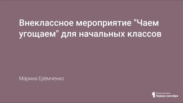 Это внеклассное мероприятие может быть проведено в любом классе начальной школы. Подобные мероприятия вызывают большой эмоциональный отклик у детей, способствуют сплочению коллектива. Цель урока – познакомить детей с происхождением чая; расширить и обогатить знания детей о традициях русского гостеприимства и чаепития. Воспитать любовь и уважение к своей стране, её традициям.