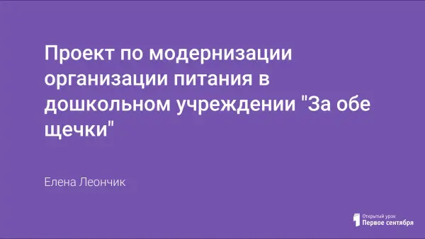 МДОУ «Детский сад № 70» администрации г. Чебоксары углубленно работает над вопросом организации питания детей. Проект по модернизации организации питания «За обе щечки» позволит осуществить модернизацию организации питания в дошкольном учреждении за счет введения нетрадиционной формы – вариативное питание с учетом приоритетов и уровня здоровья детей.