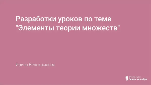 Работа включает в себя следующие разделы: Понятие множества. Равенство множеств. Подмножество. Пересечение множеств. Объединение множеств. Разность множеств. Круги Эйлера. Вопросы к тематическому зачету по теме «Элементы теории множеств».