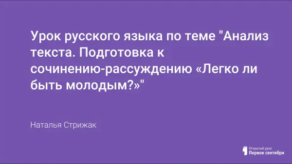 Цель урока – на основе анализа текста подготовить учащихся к домашнему сочинению. В ходе урока учащиеся отрабатывают не только умения анализировать предложенный текст, формулировать его тему, проблему, но и комментировать ее, определять позицию автора, излагать собственное мнение, опираясь на жизненный или читательский опыт, учатся правильно формулировать свои мысли, используя предлагаемые образцы-клише, а также пословицы, поговорки и крылатые выражения.