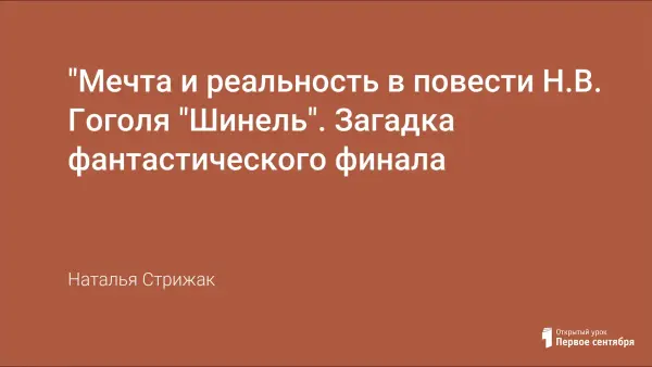 Урок является заключительным в системе уроков по повести Н.Гоголя в 8-м классе и направлен на анализ произведения с целью выявления его основных сюжетно-композиционных и жанровых особенностей, развитие умения проникать в авторский замысел.