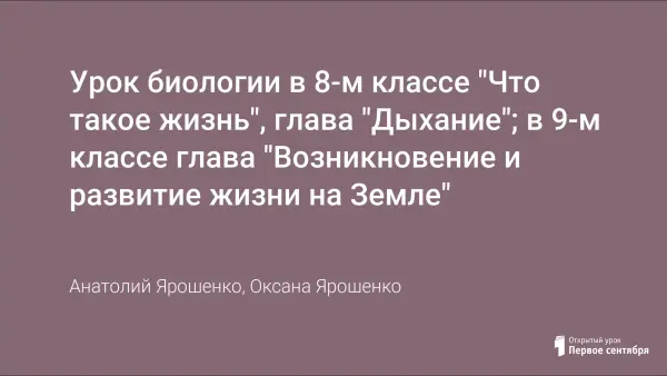 Урок биологии в 8-м классе "Что такое жизнь", глава "Дыхание"; в 9-м классе глава "Возникновение и развитие жизни на Земле"