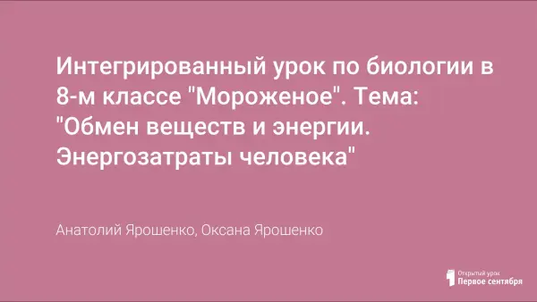 Интегрированный урок по биологии в 8-м классе "Мороженое". Тема: "Обмен веществ и энергии. Энергозатраты человека"