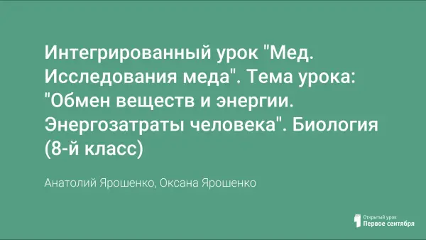 Интегрированный урок "Мед. Исследования меда". Тема урока: "Обмен веществ и энергии. Энергозатраты человека". Биология (8-й класс)