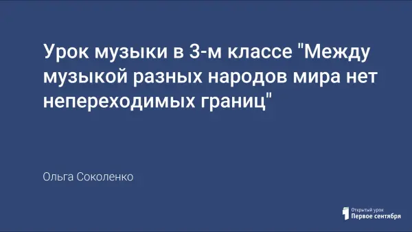 Каждый народ имеет свой язык. Музыка - это тоже язык, на котором люди, разговаривая друг с другом, выражают свои мысли и чувства, и как бы он ни отличался от других народов, в любом языке есть близкие по произношению и понятию слова, интонации, ритмы, музыкальные инструменты. И этих слов, средств музыкальной выразительности, музыкальных инструментов вполне достаточно, чтобы язык музыки сблизил разные народы мира, стал понятен всем другим народам.