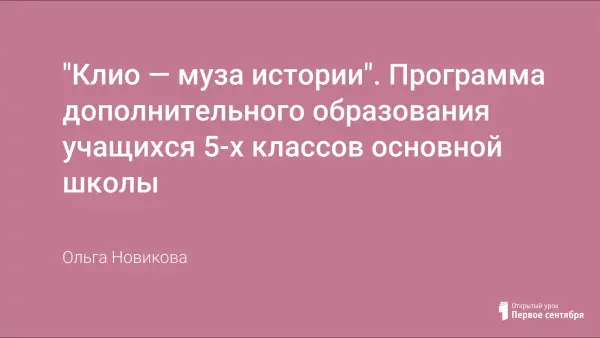 "Клио — муза истории". Программа дополнительного образования учащихся 5-х классов основной школы