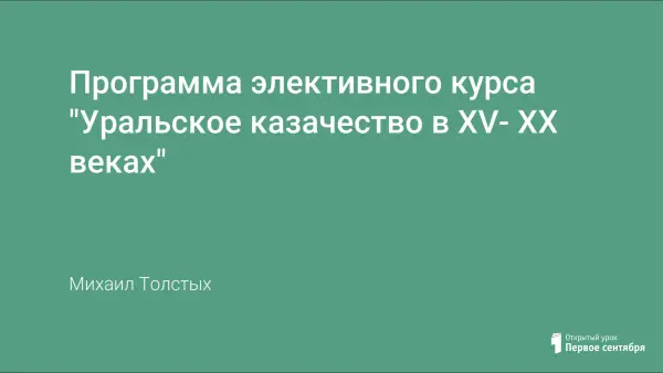 Программа элективного курса "Уральское казачество в XV- XX веках"