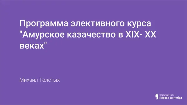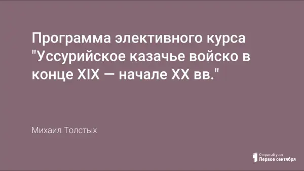 Программа элективного курса "Уссурийское казачье войско в конце XIX — начале ХХ вв."