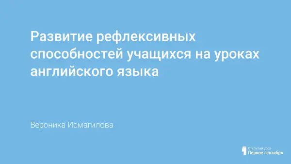 Кто из педагогов не мечтает об учениках, способных самостоятельно определять перспективы своего развития, пути и средства их реализации. Для этого необходимо учить детей осознавать то, что они делают, аргументировать и обосновывать свою деятельность. Учитель делится опытом развития рефлексивных способностей учащихся на уроках английского языка.