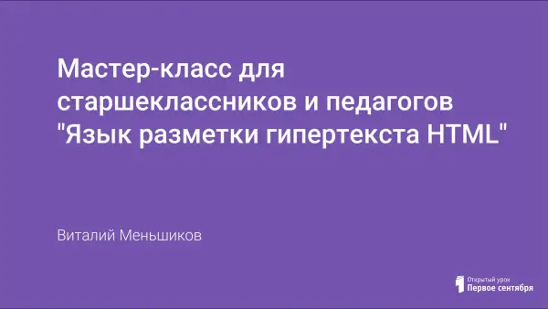 Мастер-класс для старшеклассников и педагогов знакомит с основами удобного для создания web-сайтов языка разметки гипертекста HTML.