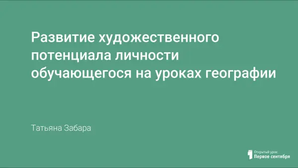 Сегодня проблема развития художественного потенциала учащихся в процессе обучения географии остается недостаточно разработанной, в то время как курс школьной географии обладает широкими возможностями развития именно художественных способностей личности.