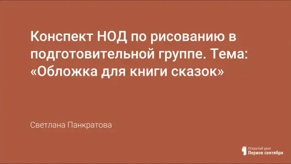 Цель занятия: формировать умение оформлять обложку для книги сказок. Задачи: формировать умение передавать особенности построения рисунка и орнамента для оформления обложки для книги сказок; формировать умение красиво подбирать цвета для рисунка, отражать в рисунке и подборе цветов содержание выбранной сказки; закрепить умение рисовать акварельными красками.