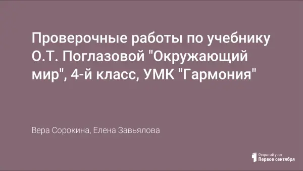 Проверочные работы по учебнику О.Т. Поглазовой "Окружающий мир", 4-й класс, УМК "Гармония"