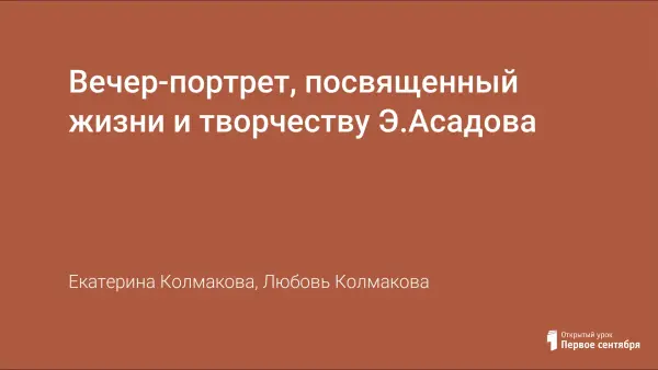 Мероприятие предназначено для учащихся старших классов. Мероприятие помогает познакомить ребят с творчеством Э.Асадова, с удивительными страницами его жизни, привить любовь к поэзии.