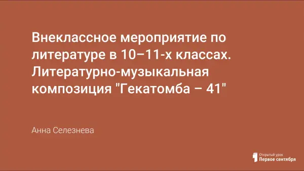 Данное мероприятие может быть проведено после изучения произведений о Великой отчественной войне 1941–1945 гг.; во внеурочное время, на большую аудиторию, в рамках торжественных мероприятий, посвященных Дню Победы или другим дням памяти о страшных событиях тех лет.