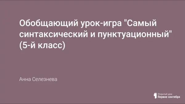 Обобщающий урок-игра проводится в 5-м классе после изучения разделов «синтаксис» и «пунктуация». Проверяются теоретические знания по изученной теме, навыки разбора словосочетания, предложения и постановки знаков препинания. Конкурсы помогают развивать сообразительность, раскрывают способности детей в сочинении собственных текстов. В целом, такой урок помогает учителю определить уровень подготовки учащихся в результате изучения синтаксиса и пунктуации.