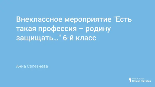 Внеклассное мероприятие посвящено Дню защитника Отечества. Входит в цикл внеклассных мероприятий, классных часов, посвященных различным праздникам России. Цикл мероприятий расширяет кругозор учащихся, углубляет их знания об истории родной страны, воспитывает чувство патриотизма.