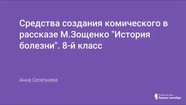 Урок представляет собой творческое исследование языка рассказа М.М. Зощенко «История болезни». В выделении и определении тех или иных средств создания комической ситуации в рассказе, учащиеся приходят к выводу, какой тип комического (юмор, сатиру или иронию) использует автор в рассказе. На уроке используется и индивидуальная, и групповая работа, каждый ученик принимает участие в исследовании.