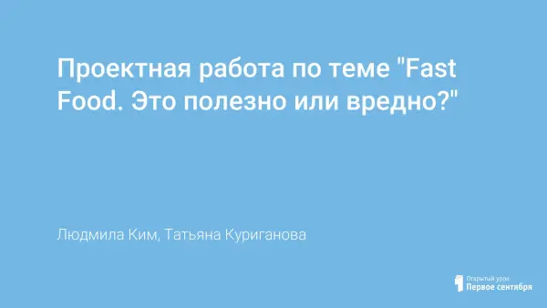 Проектная работа по теме "Fast Food. Это полезно или вредно?"