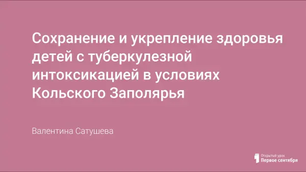 Статья, посвященная созданию оптимальных условий для контроля состояния и развития детей с туберкулезной интоксикацией в условиях Кольского Заполярья и повышению эффективности проведения лечебно-оздоровительных и воспитательно-образовательных мероприятий.