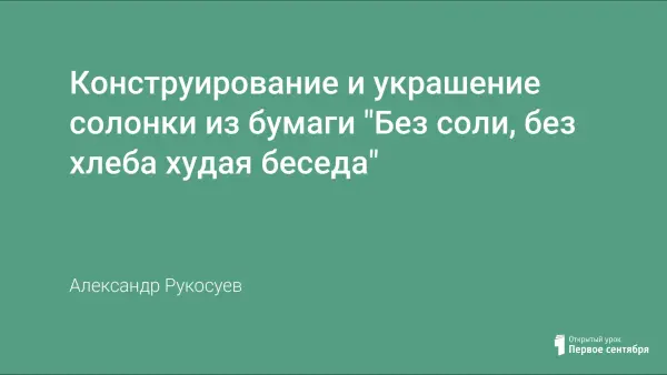 На занятии по теме "Конструкция и декор предмета быта" учащиеся знакомятся с произведениями народного искусства, которые жили вместе с человеком, помогали в быту, труде, были участниками праздников. Рассматривая разнообразные по форме и декору предметы крестьянского быта, более подробно останавливаемся на форме, конструкции солониц, украшений их резьбой и росписью. Урок можно начать со старинного предания и раскрыть понятие слова "промысел", а также отношение русского крестьянина к соли.