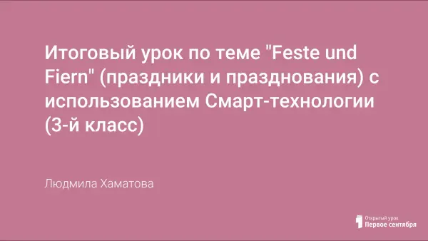 В статье представлена разработка итогового урока немецкого языка в 3-м классе по теме «Праздники и празднования» по УМК Н.Д. Гальсковой, Н.И. Гез с использованием Смарт-технологии, что позволяет создать положительную мотивацию к изучению немецкого языка в начальной школе, повторить и закрепить изученный материал по всем видам речевой деятельности.