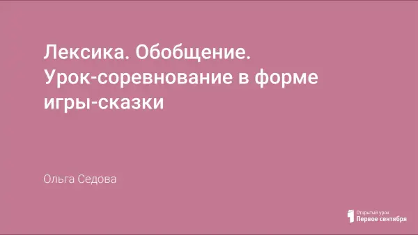 Обобщающий урок-соревнование в форме игры-сказки с целью повторить и закрепить знания по лексике (лексическое значении слова, синонимы, омонимы, иноязычные слова, фразеологические обороты и т.д.), а также совершенствовать навыки работы со словарями.