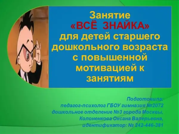Познавательная активность детей старшего дошкольного возраста с повышенной мотивацией к занятиям