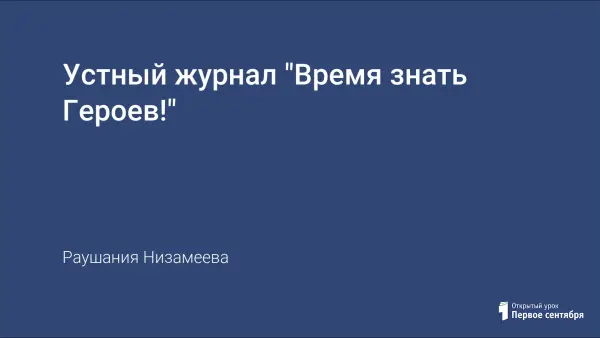 Сценарий мероприятия предлагается для проведения как одна из форм внеклассной работы (в данном случае - устный журнал) с применением краеведческого материала. Главной целью журнала является содействование патриотическому и нравственному воспитанию подрастающего поколения, ознакомление детей с биографиями Героев Советского Союза, уроженцев города Зеленодольска и Зеленодольского района.