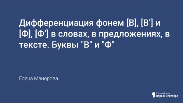 Цель занятия: выделять звуки [В], [В’] и [Ф], [Ф’] в речи, дифференцировать эти звуки в словах, в предложениях, в тексте.