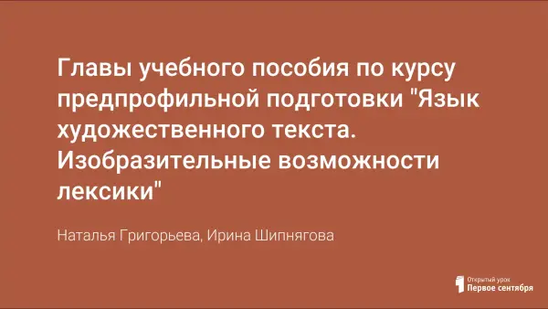 Главы учебного пособия по курсу предпрофильной подготовки "Язык художественного текста. Изобразительные возможности лексики"
