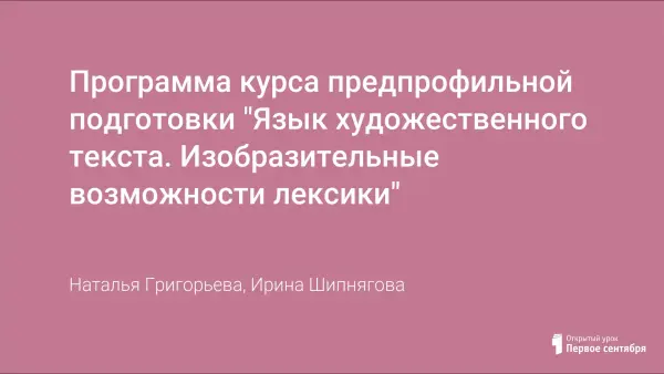 Программа курса предпрофильной подготовки "Язык художественного текста. Изобразительные возможности лексики"