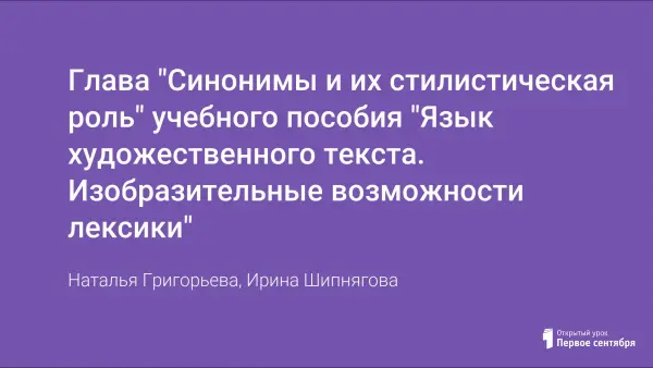 Глава "Синонимы и их стилистическая роль" учебного пособия "Язык художественного текста. Изобразительные возможности лексики"