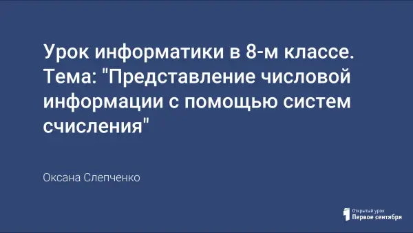 Урок информатики в 8-м классе с использованием медиапродукта для интенсификации учебно-воспитательного процесса (увеличение количества предлагаемой информации, уменьшение времени подачи материала), повышения эффективности усвоения учебного материала за счет одновременного изложения учителем необходимых сведений и показа демонстрационных фрагментов.