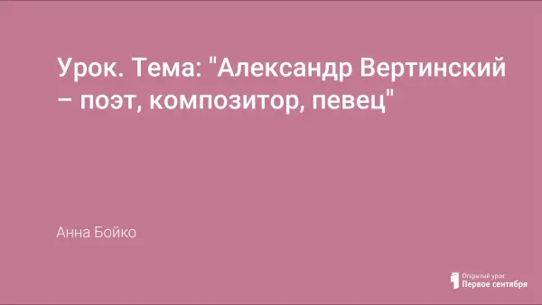 Урок. Тема: "Александр Вертинский – поэт, композитор, певец"
